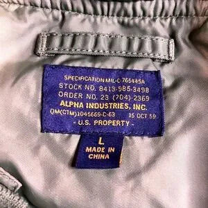 Keywords: Alpha Industries MA-1, Bomber Jacket, Military Jacket, Flight Jacket, Olive Green Jacket, Men's Bomber, Us Property, Alpha Industries Inc, Nylon Jacket, Utility Pocket, Ribbed Cuffs, Ribbed Hem, Zippered Sleeve Pocket, Classic Bomber, Casual Jacket