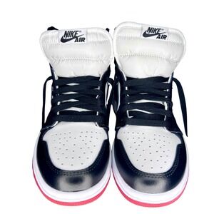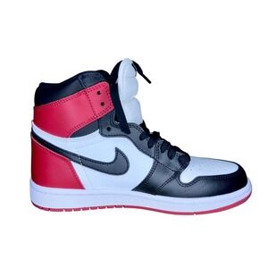 100% Authenitic Air Jordan 1 Retro High OG sneakers in the iconic Chicago colorway. These high-top sneakers feature a white leather upper with black accents on the toe, Swoosh, and collar, complemented by vibrant red overlays on the heel and ankle. The design includes a padded collar and tongue for added comfort, along with a perforated toe box for enhanced breathability. Ideal for casual wear, streetwear fashion, or athletic activities, these sneakers offer a blend of classic style and modern appeal.