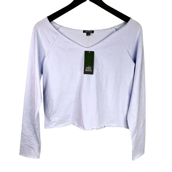 Keywords: Wild Fable, crop top, long sleeve, V neck, light blue, womens top, casual top, raglan sleeve, cropped, raw hem, XL, extra large